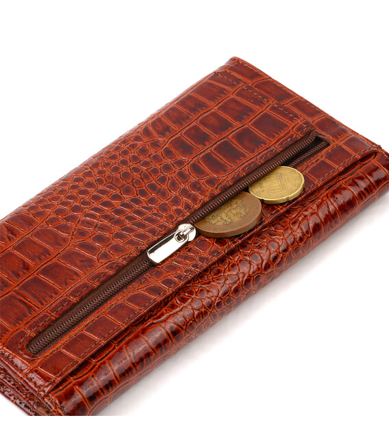 Жіноче портмоне з лакованої натуральної шкіри з тисненням під крокодила CANPELLINI 21704 Коричневе