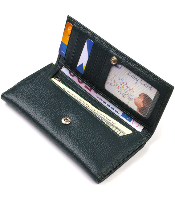 Практичне жіноче портмоне з натуральної шкіри флотар CANPELLINI 21854 Зелений