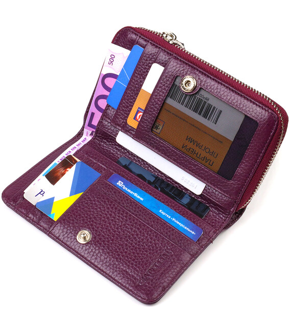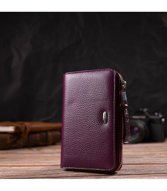 Яскраве жіноче портмоне середнього розміру з натуральної зернистої шкіри CANPELLINI 21909 Бузкове
