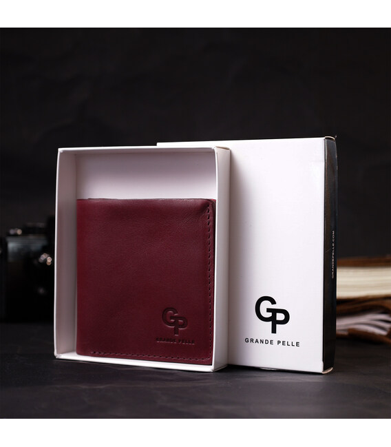 Невеликий гаманець для жінок із натуральної високоякісної шкіри. Має гарний колір марсала та гладку фактуру. Внутрішнє наповнення добре продумане та практичне. Запакований цей гаманець у фірмову картонну коробку з логотипом бренду. Ми впевнені, що вироби української фірми Grande Pelle, нікого не залишать байдужими, і Ви ще неодноразово повернетесь за цими якісними шкіряними аксесуарами.
