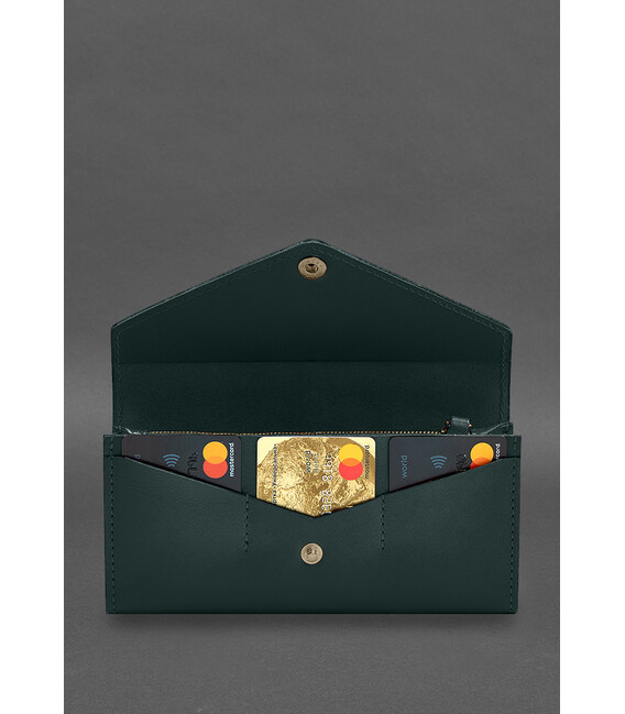 Детальніше Шкіряний клатч (портмоне) на кнопці 5.0 Зелений краст