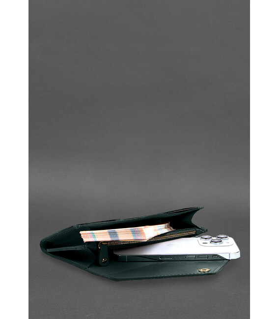 Шкіряний клатч (портмоне) на кнопці 5.0 Зелений краст