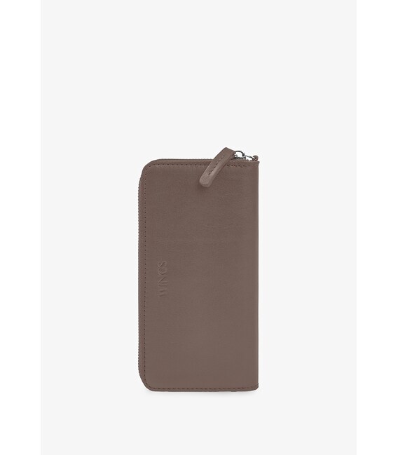 Шкіряний портмоне на блискавці Monik темно-бежеве