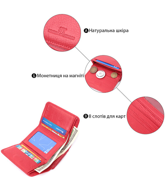 Жіноче портмоне з монетницею із натуральної шкіри ST Leather 22727 Червоний