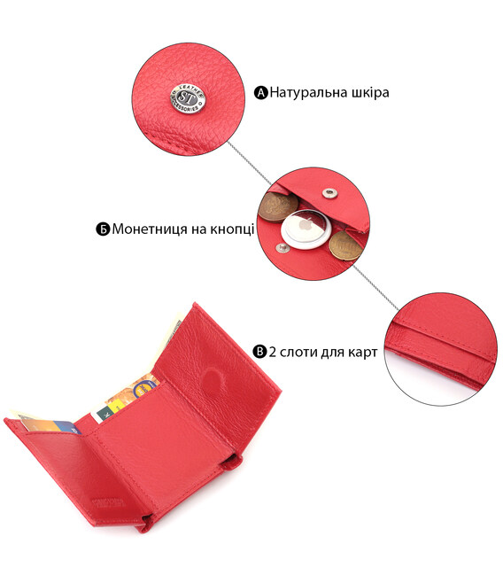 Детальніше Компактне жіноче портмоне з монетницею із натуральної шкіри ST Leather 22729 Червоний
