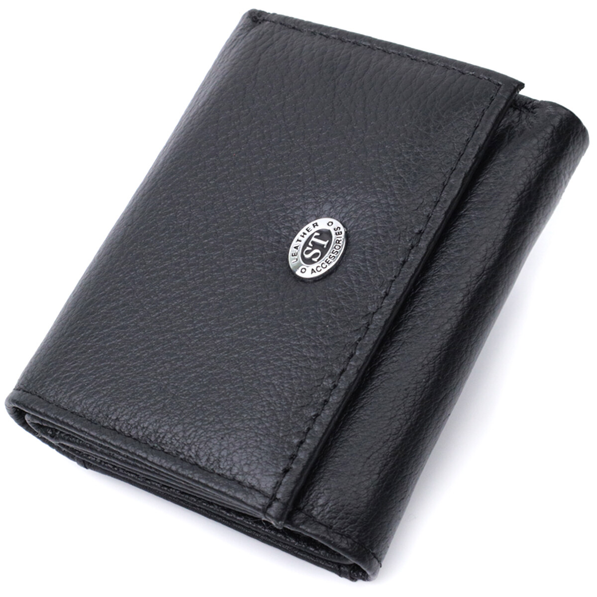 Стильний гаманець для жінок із натуральної якісної шкіри. Модель має невеликі розміри, що закривається на магніт. Зовні можна побачити відділення для монет. Щоб не обтяжувати аксесуар, всередині розташований мінімальний функціонал: пару відділень для паперових грошей і два осередки для пластикових карт. Зовні виріб прошитий рівним рядком по краю і прикрашений металевим логотипом компанії виробника, який розміщений на клапані посередині. Портмоне доповнено надійною фурнітурою та міцною підкладкою. Запакований аксесуар у білу щільну картонну коробку з фірмовим логотипом.