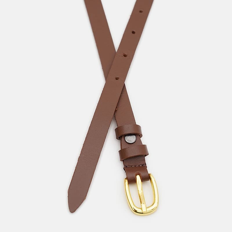 Жіночий шкіряний ремінь. Якісні матеріали, стильна пряжка й акуратний зовнішній вигляд. Ремінь зроблений із натуральної шкіри та металевої фурнітури. Лицьова сторона ременя захищена від вологи, жиру й агресивних середовищ. Догляд — мінімальний (сухе чищення). У разі потреби, ремінь можна вкоротити самостійно до потрібної вам довжини.