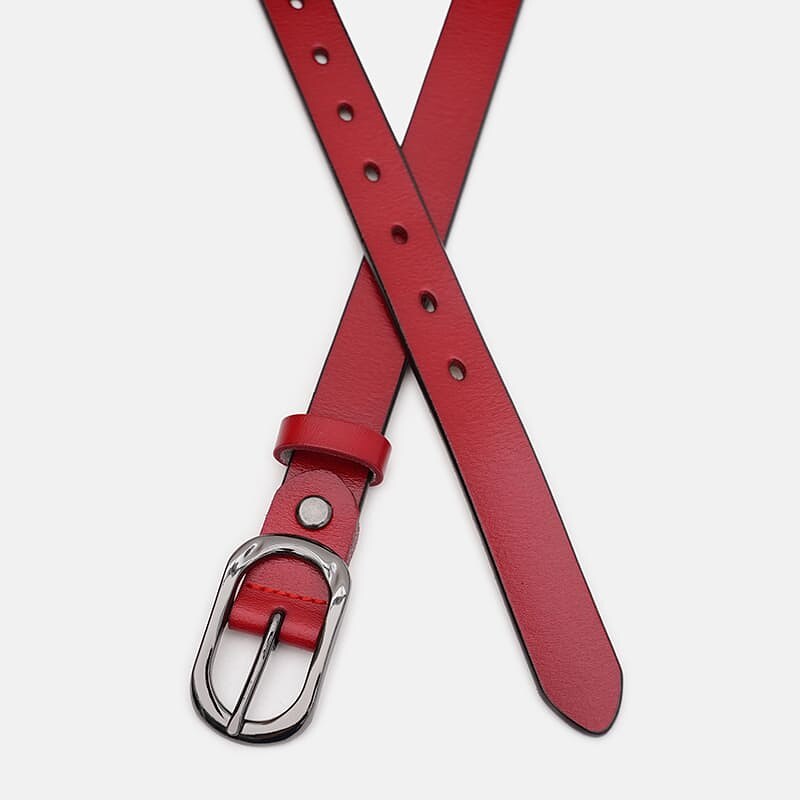 Жіночий шкіряний ремінь. Якісні матеріали, стильна пряжка та акуратний зовнішній вигляд. Ремінь виконаний з натуральної шкіри та металевої фурнітури. Лицьова сторона ременя захищена від вологи, жиру та агресивних середовищ. Догляд – мінімальний, за потреби (сухе чищення).