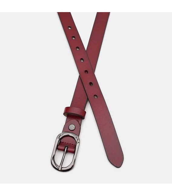 Жіночий шкіряний ремінь. Якісні матеріали, стильна пряжка та акуратний зовнішній вигляд. Ремінь виконаний з натуральної шкіри та металевої фурнітури. Лицьова сторона ременя захищена від вологи, жиру та агресивних середовищ. Догляд – мінімальний, за потреби (сухе чищення).