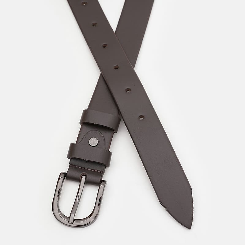 Жіночий шкіряний ремінь. Якісні матеріали, стильна пряжка та акуратний зовнішній вигляд. Ремінь виконаний з гладкої натуральної шкіри та металевої фурнітури. Лицьова сторона ременя захищена від вологи, жиру та агресивних середовищ. Догляд – мінімальний, за потреби (сухе чищення).