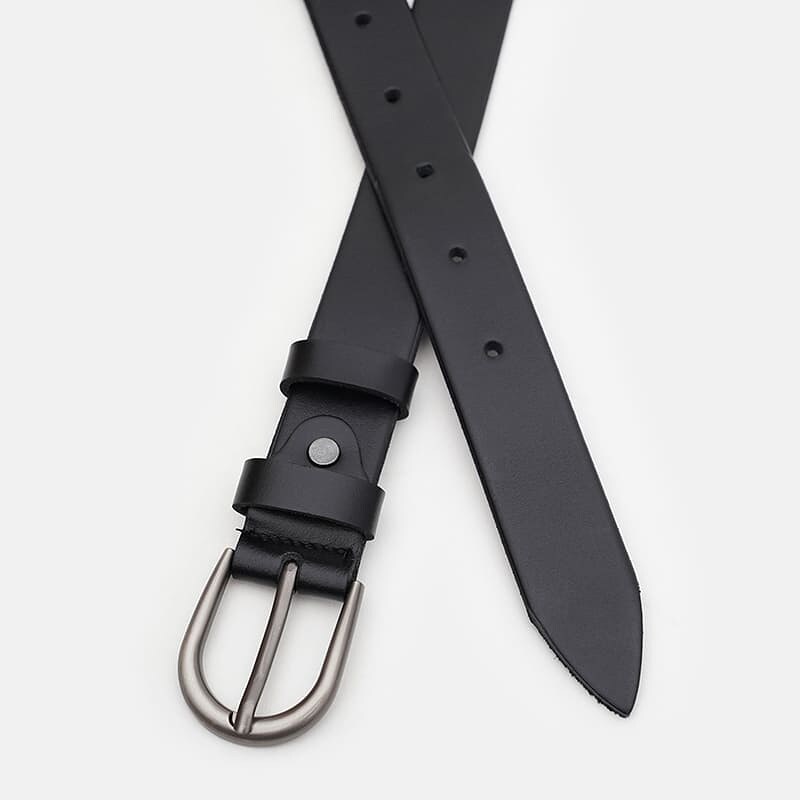 Жіночий шкіряний ремінь. Якісні матеріали, стильна пряжка та охайний зовнішній вигляд. Ремінь виконаний з гладкої натуральної шкіри та металевої фурнітури. Лицьова сторона ременя захищена від вологи, жиру та агресивних середовищ. Догляд – мінімальний, за потреби (сухе чищення).