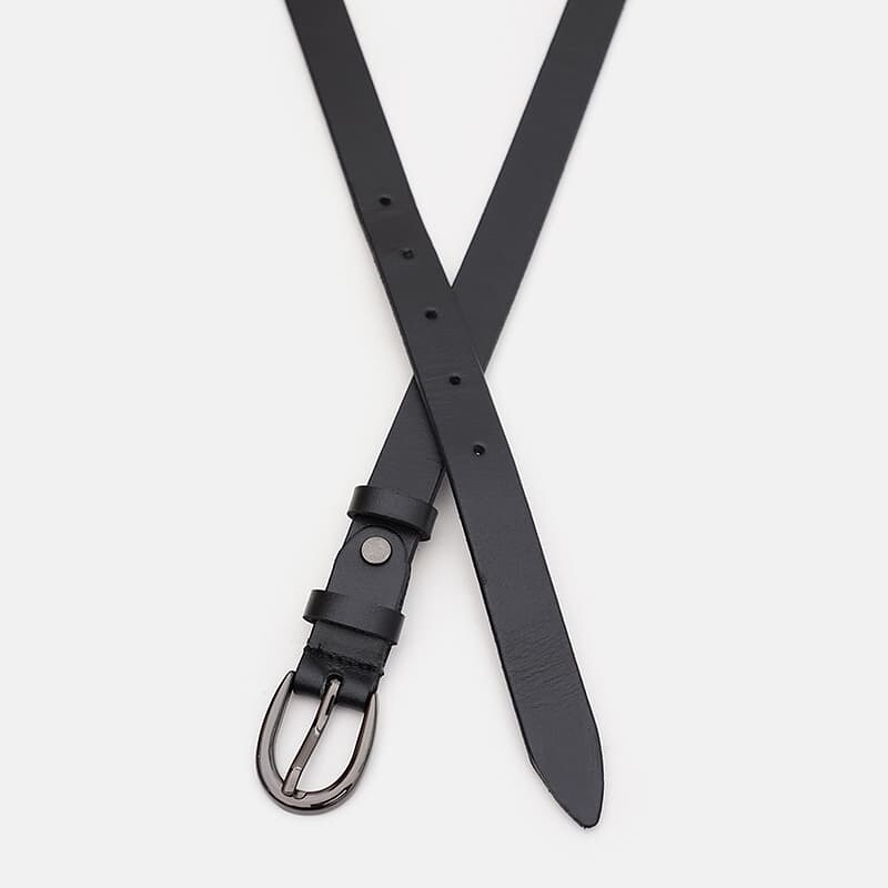 Жіночий шкіряний ремінь. Якісні матеріали, стильна пряжка та охайний зовнішній вигляд. Ремінь виконаний з гладкої натуральної шкіри та металевої фурнітури. Лицьова сторона ременя захищена від вологи, жиру та агресивних середовищ. Догляд – мінімальний, за потреби (сухе чищення).