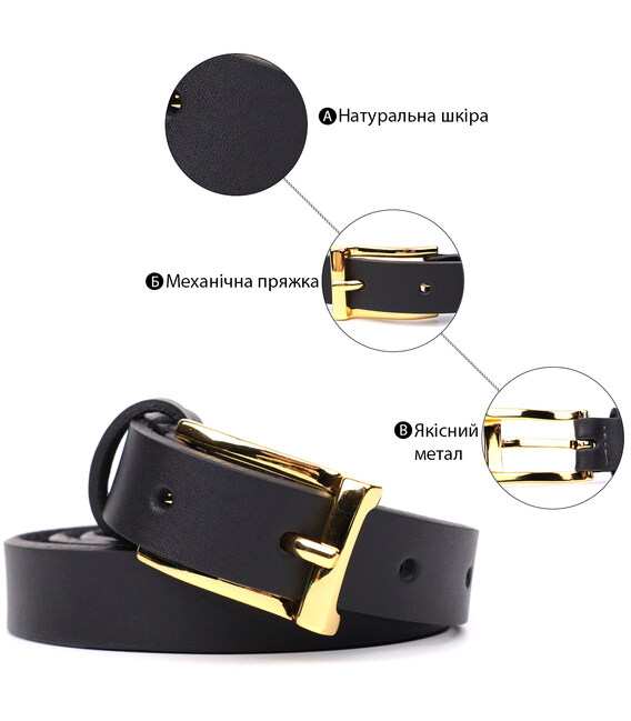 Детальніше Тонкий шкіряний ремінь для жінок GRANDE PELLE 22947 Чорний