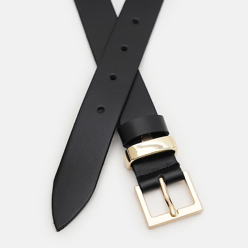 Жіночий шкіряний ремінь. Якісні матеріали, стильна пряжка та акуратний зовнішній вигляд. Ремінь виконаний з натуральної шкіри та металевої фурнітури. Лицьова сторона ременя захищена від вологи, жиру та агресивних середовищ. Догляд – мінімальний, за потреби (сухе чищення).