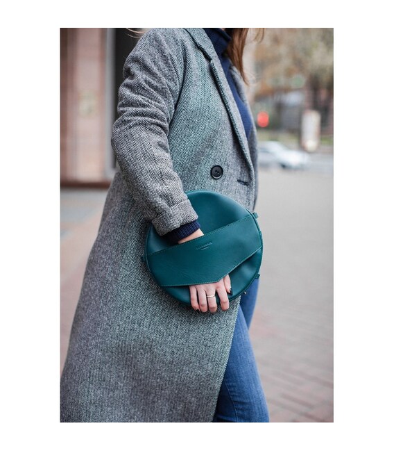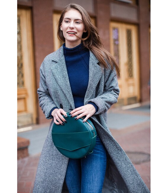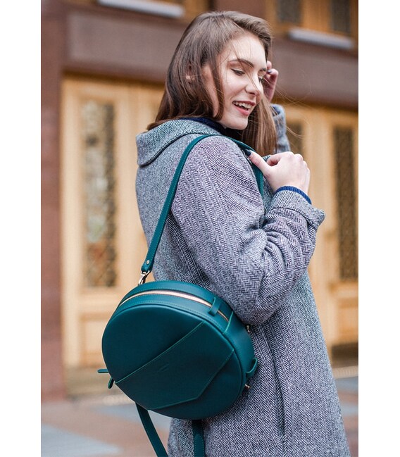 Детальніше Шкіряна жіноча кругла сумка-рюкзак Maxi зелена