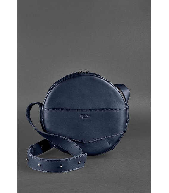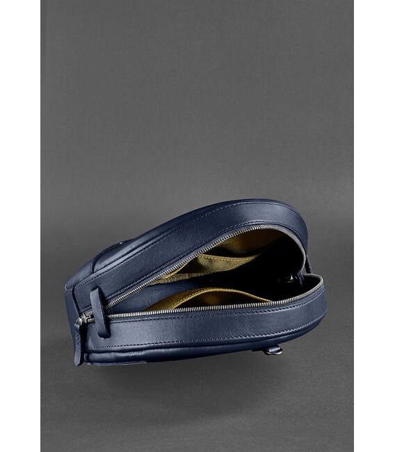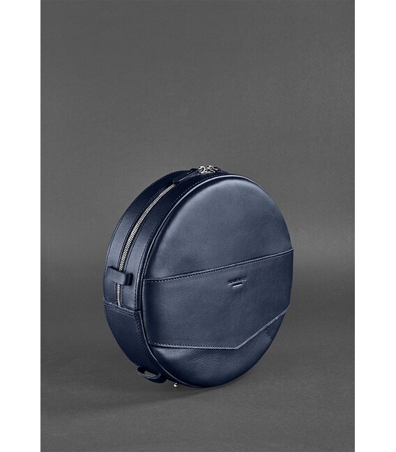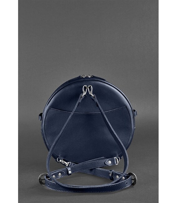 Детальніше Шкіряна жіноча кругла сумка-рюкзак Maxi темно-синя
