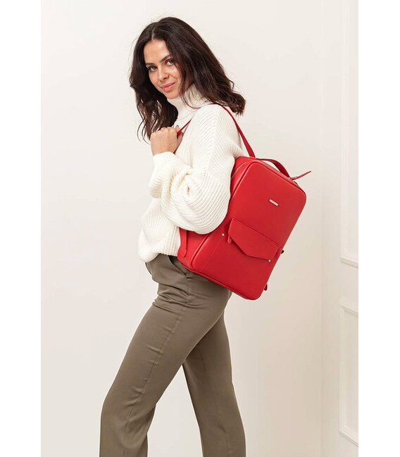 Шкіряний міський жіночий рюкзак на блискавці Cooper червоний