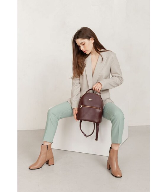 Найпопулярнішими аксесуарами сьогодні є рюкзаки та сумочки крос-боді. Саме тому у нас народилася ідея створити універсальну модель-трансформер. Представляємо Вам наш новий міні-рюкзак благородного кольору марсала, який з легкістю перетворюється на вишукану і стильну плечову сумку. Для цього всього лише потрібно перестегнуть одну лямку в положення плечового ременя. Довжину плечового ременя можна регулювати, що дає можливість носити сумку різними способами.