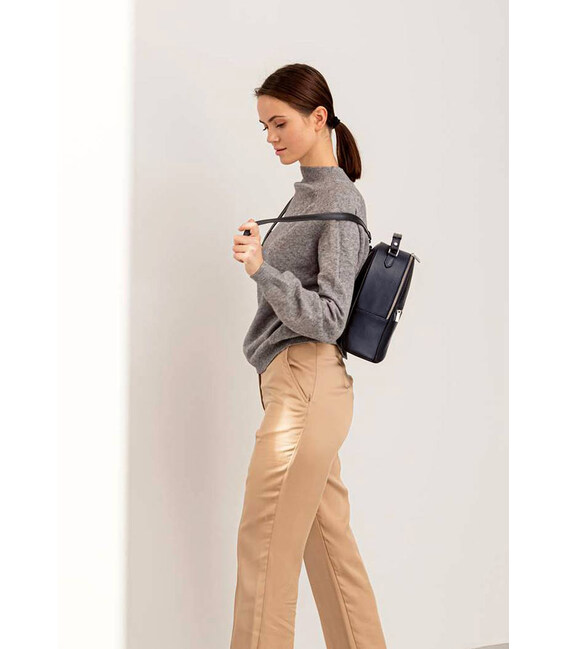 Найпопулярнішими аксесуарами сьогодні є рюкзаки і сумочки крос-боди. Саме тому у нас з’явилася ідея створити універсальну модель - трансформер. Представляємо Вам наш новий міні - рюкзак темно - синього кольору, який з легкістю перетворюється на вишукану і стильну плечову сумку. Для цього усього лише вимагається перестебнути одну лямку в положення плечового ременя. Довжину плечового ременя можна регулювати, що дає можливість носити шкіряний жіночий міні-рюкзак Kylie Темно-синій краст (BN-BAG-22-navy-blue) різними способами.