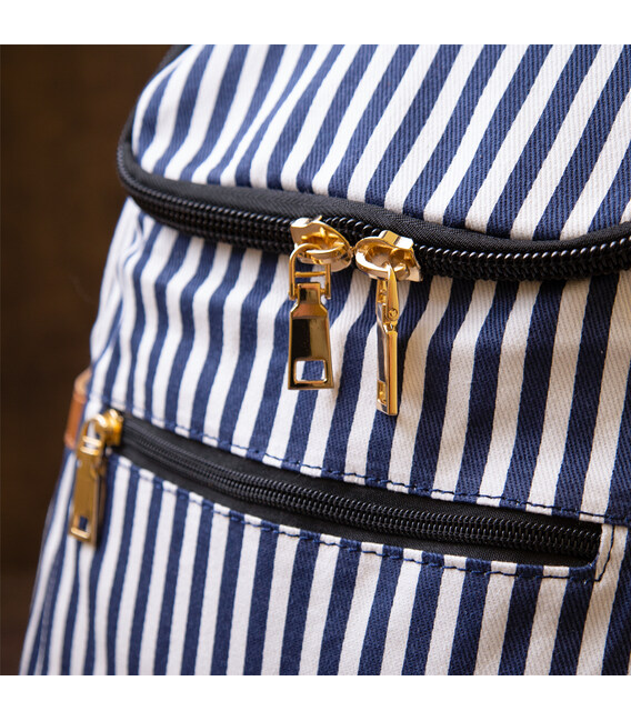 Маленький компактний рюкзак на літо з текстилю. Аксесуар в смужку має морський дизайн. Рюкзак має найнеобхідніший і практичний функціонал. Всередині - якісна підкладка з щільної тканини. Рюкзак закривається на 2 собачки. Блискавка масивна і довго служитиме. Рюкзак має щільні якісні ручки. Рюкзак відмінно підійде як на кожен день, так і в поїздку. Рюкзак дуже зручний і легко вмістить особисті речі. Виріб має невеликий розмір і легку вагу. З рюкзаком ваші руки будуть вільні.