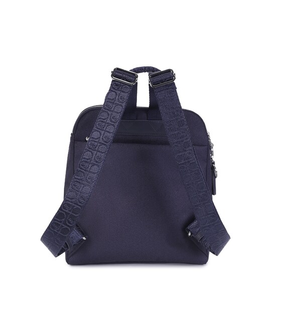 Жіночий рюкзак, не великого розміру, який завдяки своєму універсальному дизайну, доречно, виглядатиме в будь якому Вашому образі. Оснащений двома основними відділами на блискавці, які з'єднуються між собою прихованим магнітом, за для забезпечення комфортного користування та естетичного вигляду виробу. В одному з відділів присутня додаткова кишеня з RFID-захистом та гачок для ключів. Зовні, оснащений не великими кишенями, на передній та задній сторонах + вишукана знімна вішалка для ключів. Додатково має в комплекті знімну косметичку. Виконаний зі 100% переробленого поліестеру PET (поліефірна тканина з перероблених пластикових пляшок).