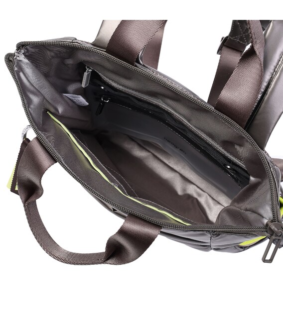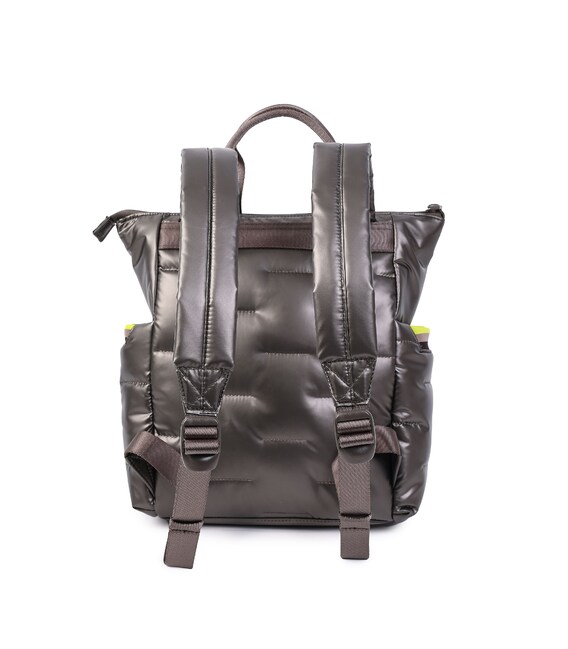 Місткий, дутий рюкзак-ідеальний супутник на кожен день. Оснащений великим основним відділенням з внутрішніми кишенями і знімною косметичкою. Із зовнішнього боку розташована кишеня на блискавці, також є бічні кишені для парасольки або пляшки з карабіном для ключів. Виконаний з щільного 100% polyester.