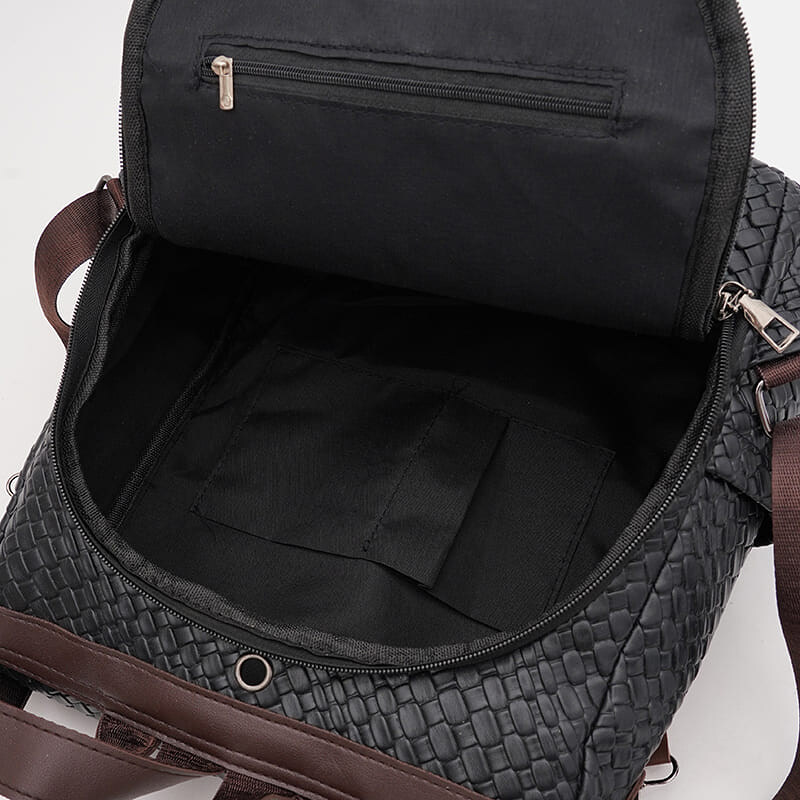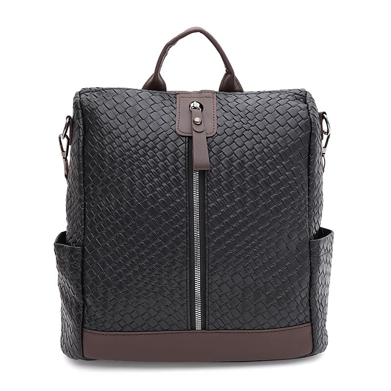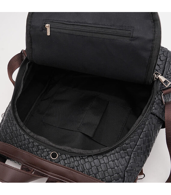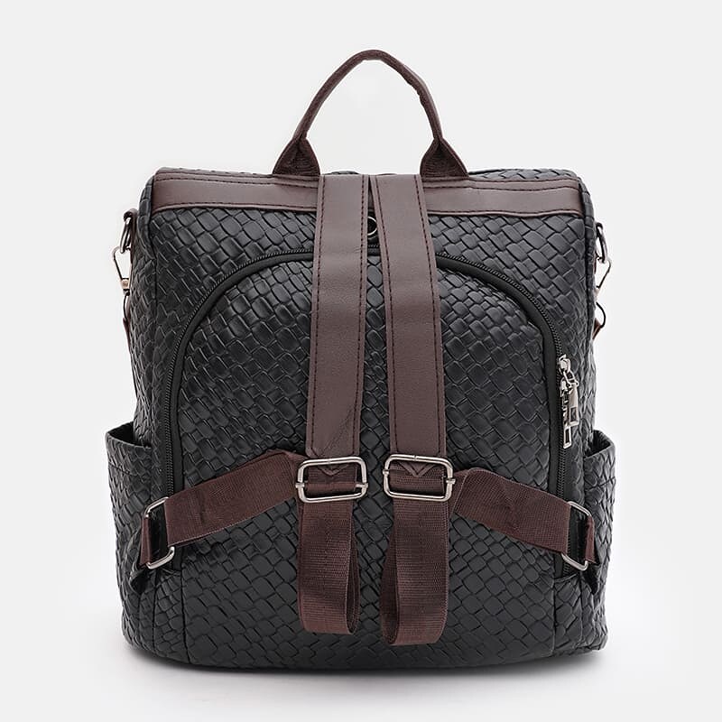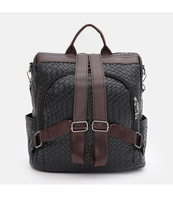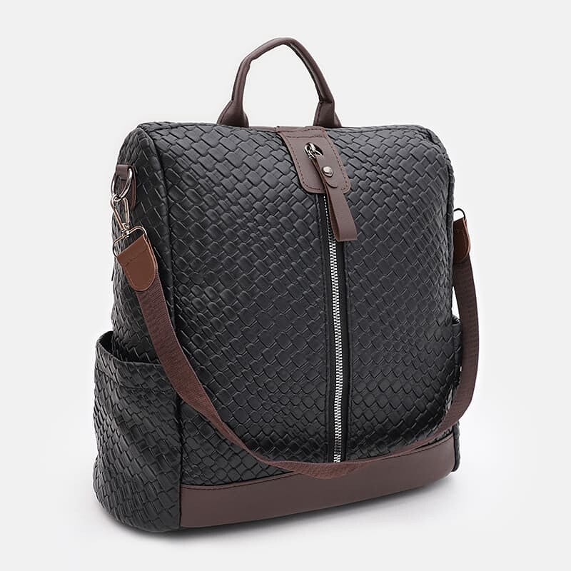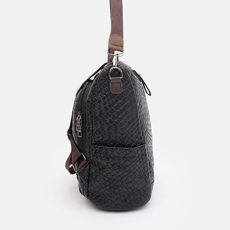 Жіночий рюкзак має 1 основне відділення, яке закривається на блискавку. З лицьового боку -1 кишеня на блискавці, з тильної-1 кишеня на блискавці та 2 бічні кишені. Усередині є 1 кишеня на блискавці та 2 кишені для телефону та інших дрібниць. Підкладка текстилю. У комплекті є знімний плечовий ремінь. Ручки виконані зі штучної шкіри.