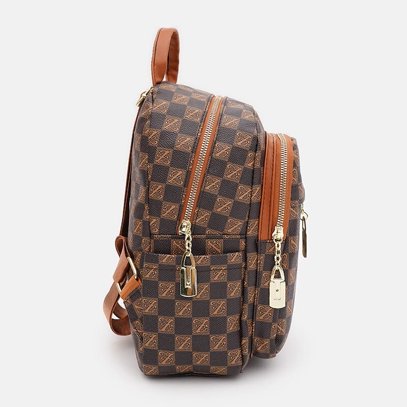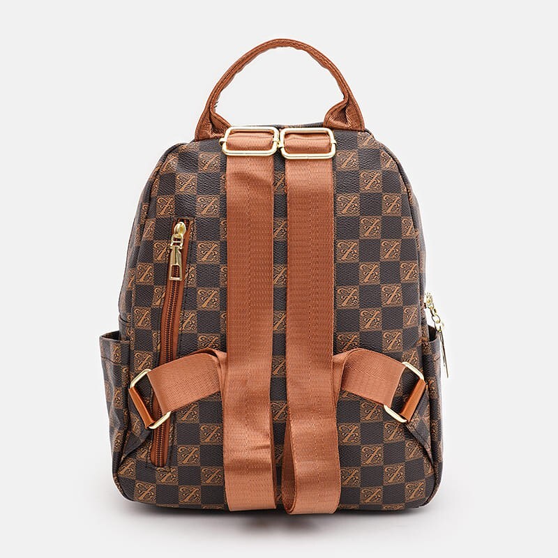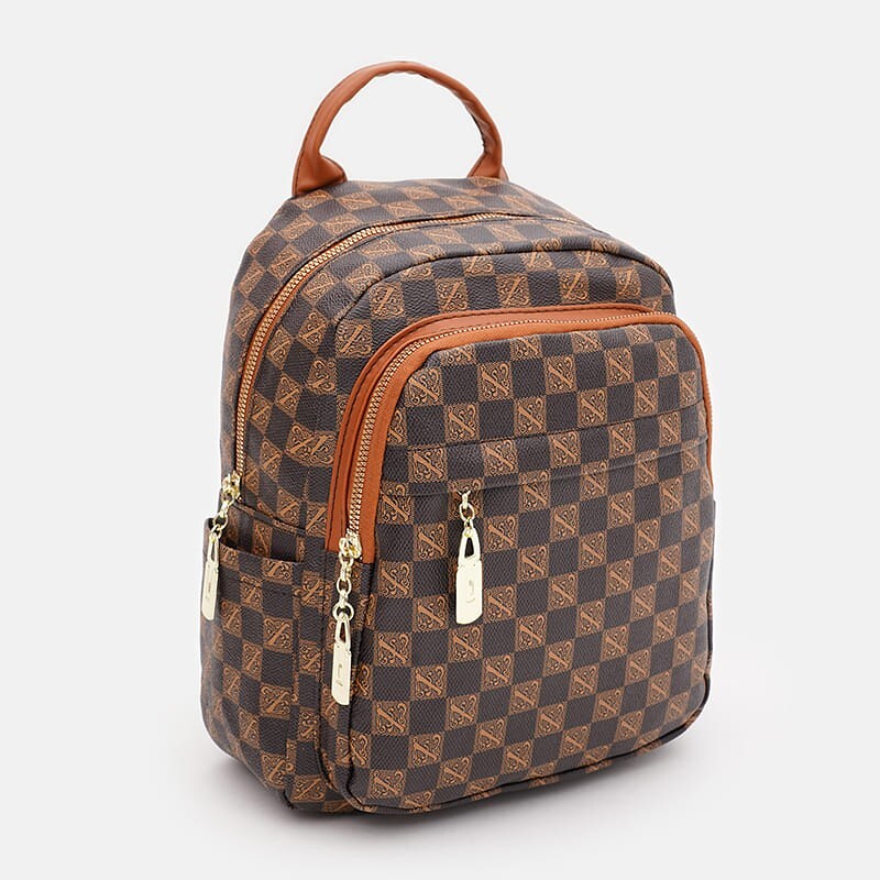 Жіночий рюкзак має 1 основне відділення, яке закривається на блискавку. З лицьового боку -2 кишені на блискавці, з тильної-1 кишеня і 2 бічні кишені. Усередині - 1 кишеня на блискавці та 1 кишеня для телефону та інших дрібниць. Підкладка текстилю. Ручки виконані зі штучної шкіри, плечові ремені – з текстилю.