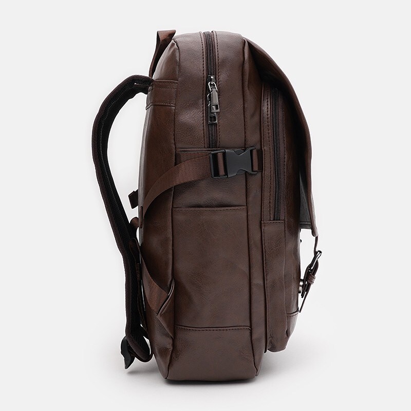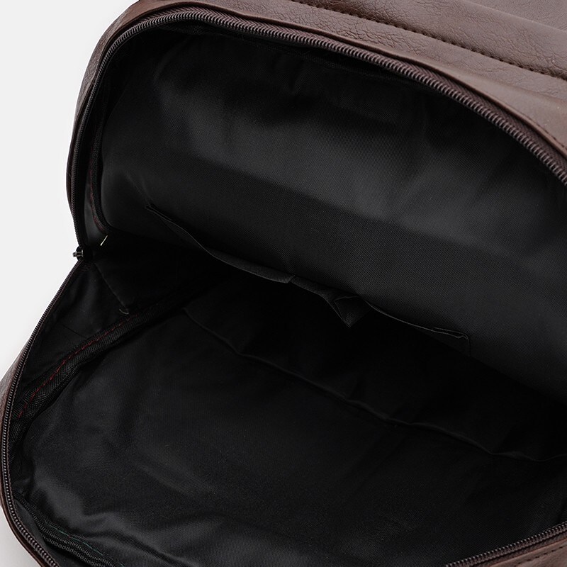 Чоловічий рюкзак виконаний із якісної штучної шкіри. Головне відділення закривається на блискавку. Усередині 4 кишені для телефону та дрібниць. З лицьового боку є додаткове відділення на застібках. З боків є по каману. Підкладка – текстиль. Незнімні лямки регулюються по довжині.
