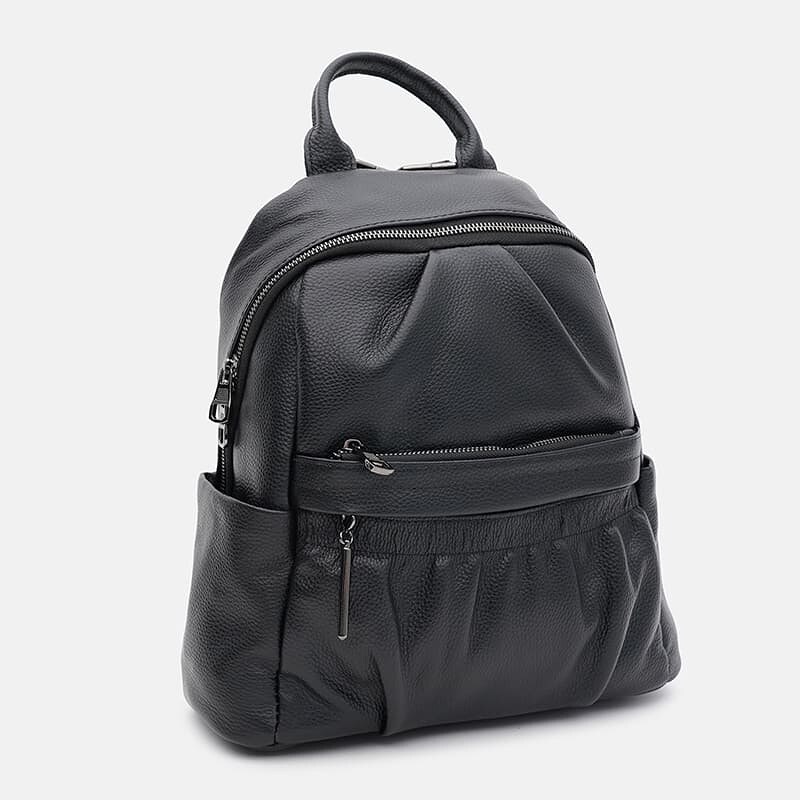 Жіночий рюкзак виготовлений з натуральної шкіри. Має 1 основне відділення на блискавці. Усередині 4 кишені для телефону та інших аксесуарів. З лицьового боку-2 кишені, з тильної-1 кишеня. Підкладка-текстиль. Лямки регулюються по довжині, ручка зі шкіри.