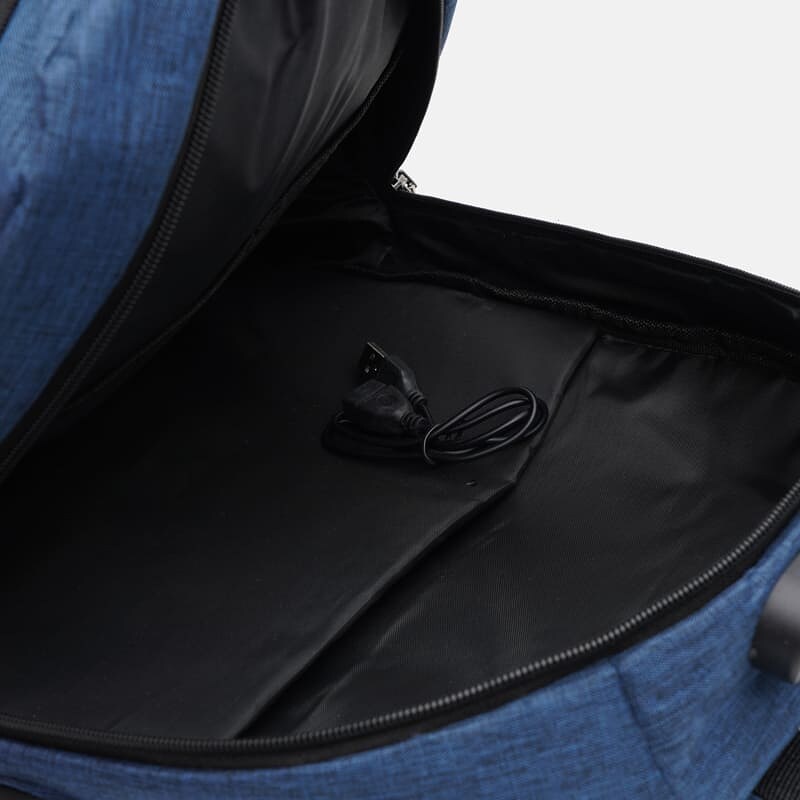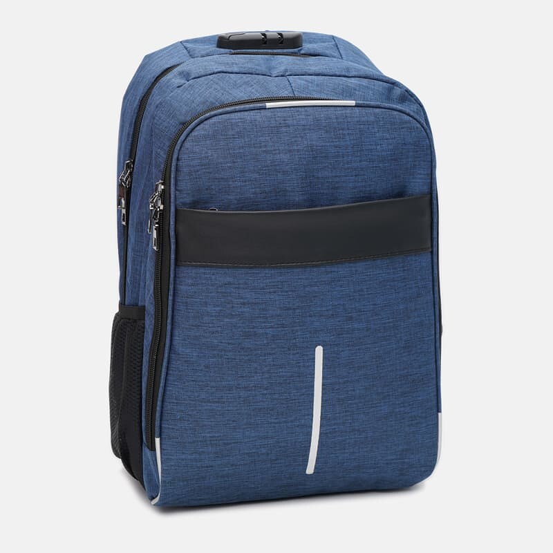 Рюкзак виконаний із міцного текстилю. Має 2 відокремлення на блискавках. Всередині є відокремлення під ноутбук і кілька кишень. Зовні 1 містка кишеня на блискавці і 2 бічні кишені. Є USB порт. Плечові ремені регулюються за довжиною. Підкладка текстилю.