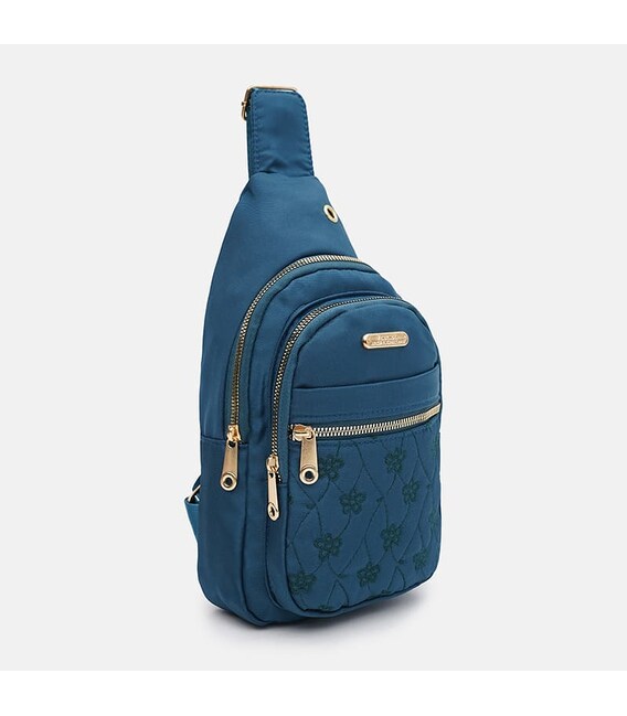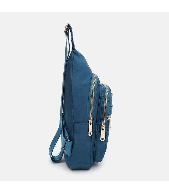 Жіночий рюкзак виконаний із текстилю, має 1 основне відділення на блискавці, всередині 1 кишеню на блискавці. З лицьового боку 2 кишені на блискавці та 1 кишеня для телефону та інших дрібниць. Підкладка текстиль, незнімний текстильний ремінь регулюється по довжині.