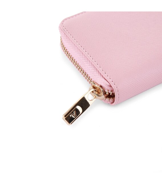 Стильний аксесуар, закривається зовнішньою металевою блискавкою, що йде по всій бічній стороні. У гаманці є два відділення для купюр, відділення для монет, що закривається на блискавку і слоти для кредитних карт з RFID-захистом від шахрайства.