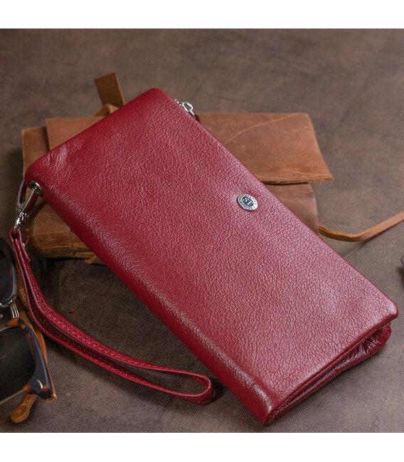 Детальніше Гаманець-клатч зі шкіри з кишенею для мобільного ST Leather 19311 Бордовий