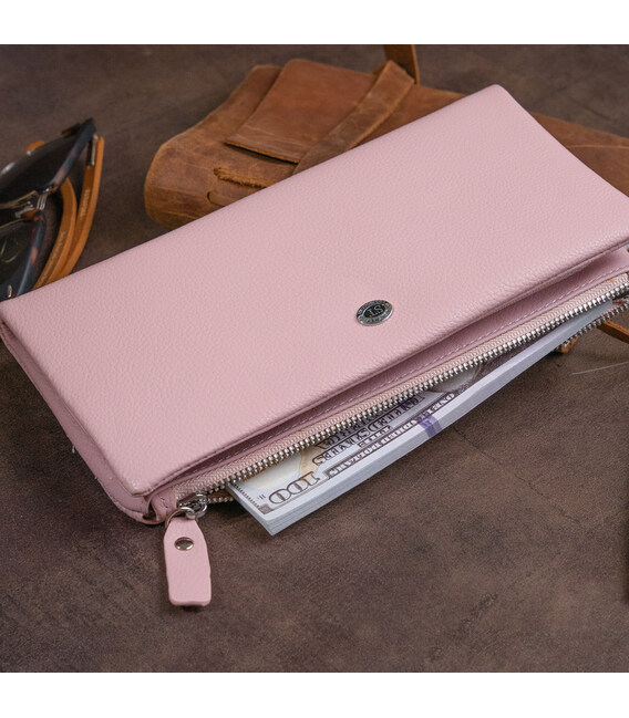 Детальніше Гаманець-клатч зі шкіри з кишенею для мобільного ST Leather 19313 Рожевий