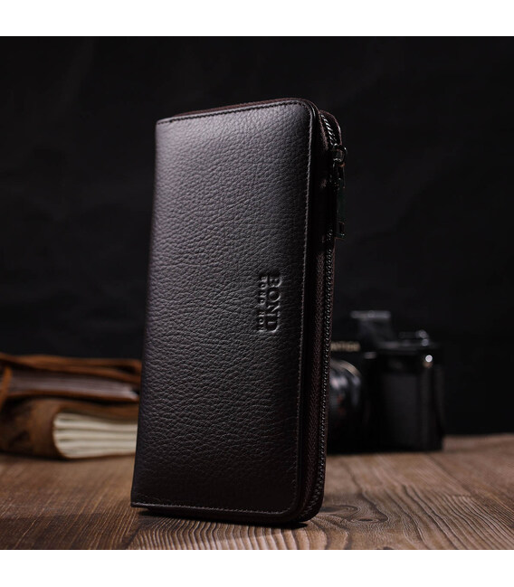 Зручний жіночий гаманець із натуральної зернистої шкіри BOND 21981 Коричневий
