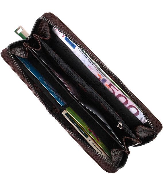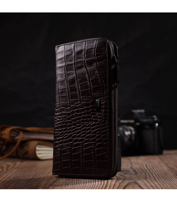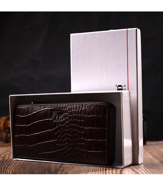 Детальніше Практичний жіночий гаманець із натуральної шкіри з тисненням під крокодила BOND 21982 Коричневий