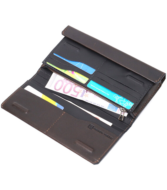 Вертикальний гаманець із відділенням для телефону з натуральної шкіри GRANDE PELLE 11645 Коричневий