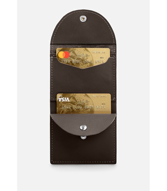 Усередині одне відділення для купюр та два відділення для пластикових карток. Ще є дуже зручна монетниця, яка також закривається клапаном із кнопкою.