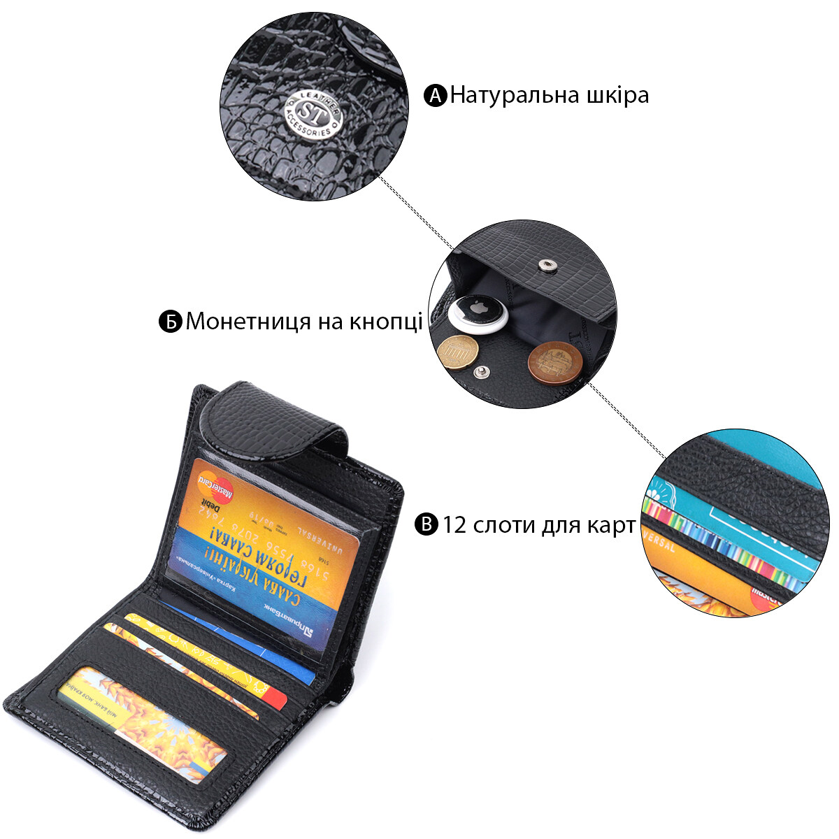 - дванадцять слотів для пластикових карток;