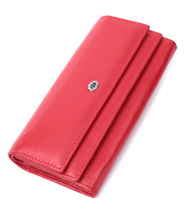 Жіночий яскравий гаманець із двома клапанами з високоякісної шкіри флотар, яка має шляхетну зернистість та високий рівень зносостійкості. Аксесуар має все необхідне, щоб стати Вам незамінним помічником у повсякденному житті. Ви легко помістите в нього паперові купюри, монети, документи, картки. На лицьовій стороні посередині розташований металевий логотип виробника, що є запорукою якості виробу. Запакований аксесуар у білу щільну картонну коробку з фірмовим логотипом.