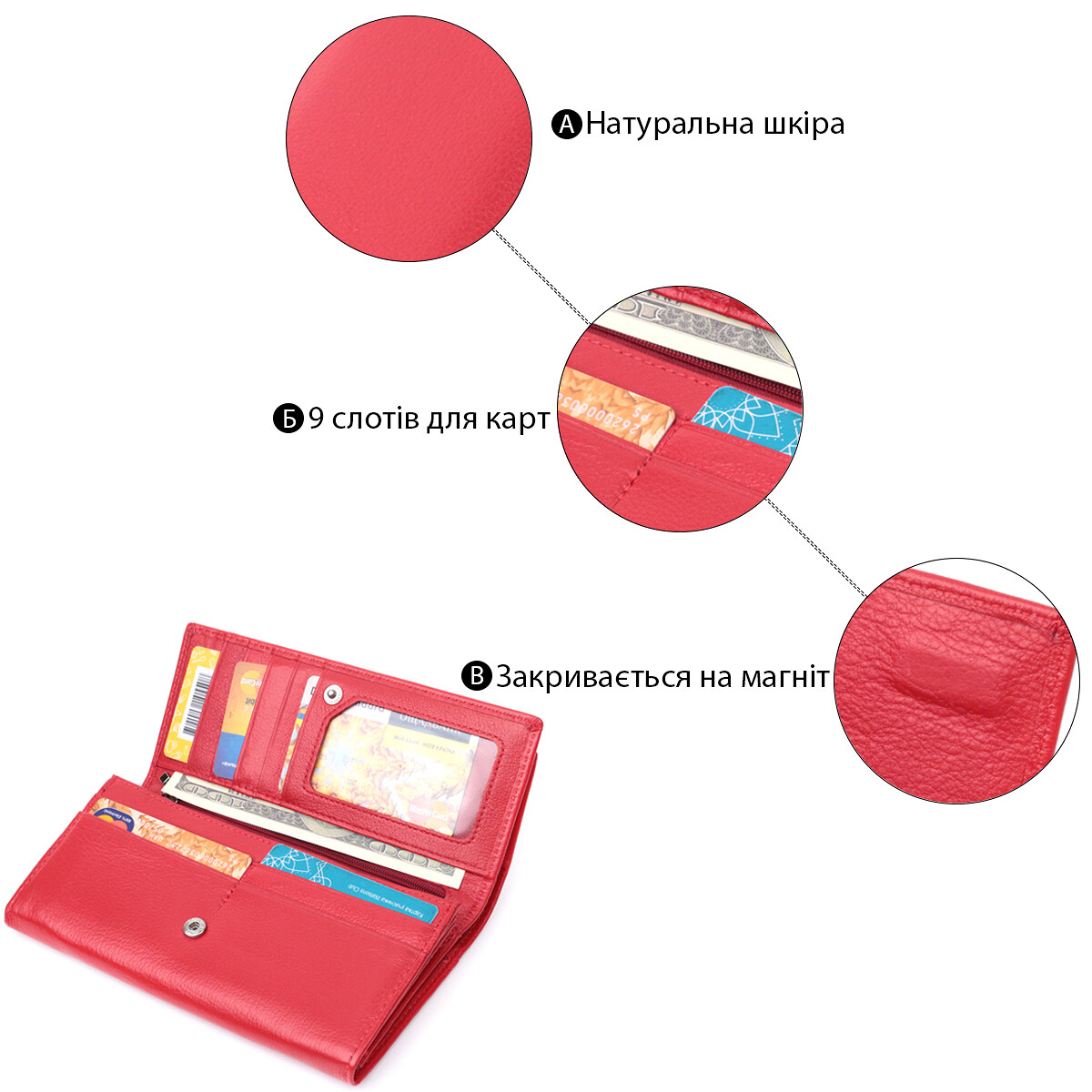 - дев'ять слотів для пластикових карток;