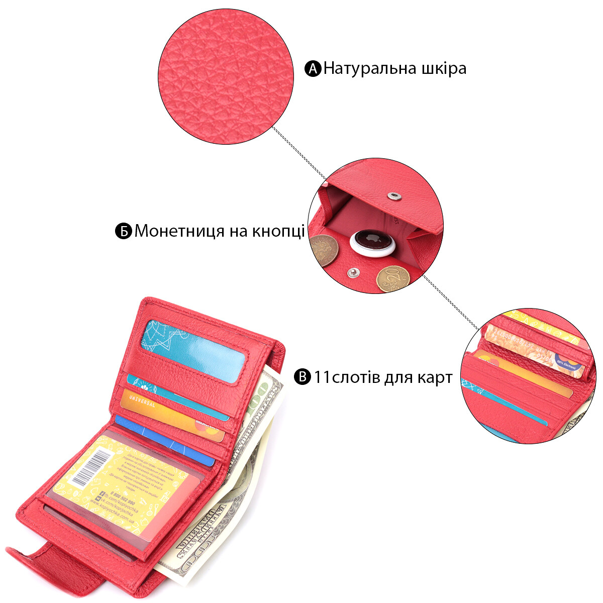 Яскравий вертикальний гаманець для жінок середнього розміру із високоякісної шкіри флотар, яка має благородну зернистість та високий рівень зносостійкості. Аксесуар має все необхідне, щоб стати Вам незамінним помічником у повсякденному житті. Ви легко помістите в нього паперові купюри, монети, документи, картки. На лицьовій стороні, у правому нижньому кутку розташоване тиснення логотипа виробника, що є запорукою якості виробу. Запакований аксесуар у білу щільну картонну коробку з фірмовим логотипом.