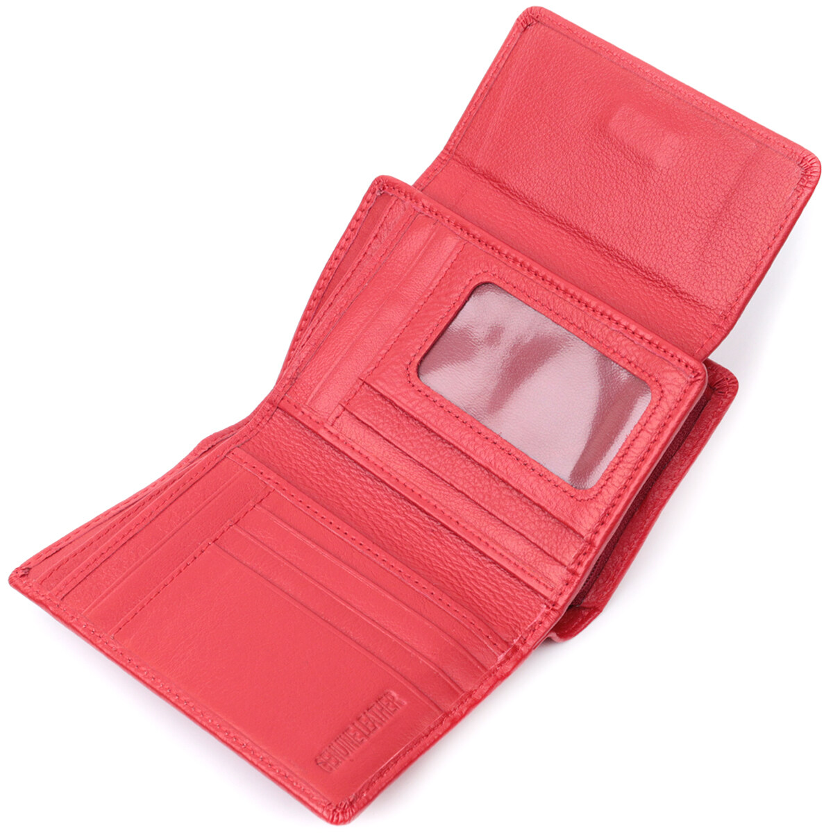 Яскравий гаманець середнього розміру для жінок із натуральної якісної шкіри. Модель має зручний розмір та закривається на магніт. Зовні можна побачити відділення для монет. Аксесуар всередині оснащений двома відділеннями для купюр та одинадцятьма осередками для карт. Запакований аксесуар у білу щільну картонну коробку з фірмовим логотипом.