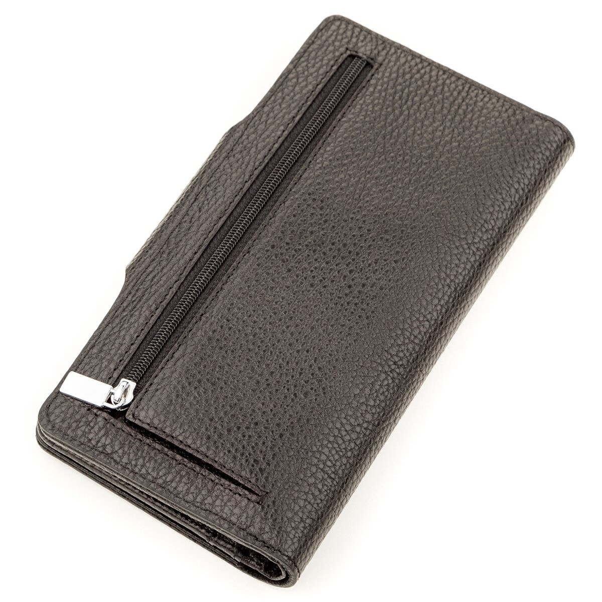 Містке портмоне унісекс чорного кольору з тисненою поверхнею.