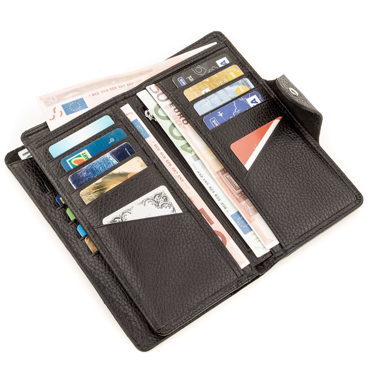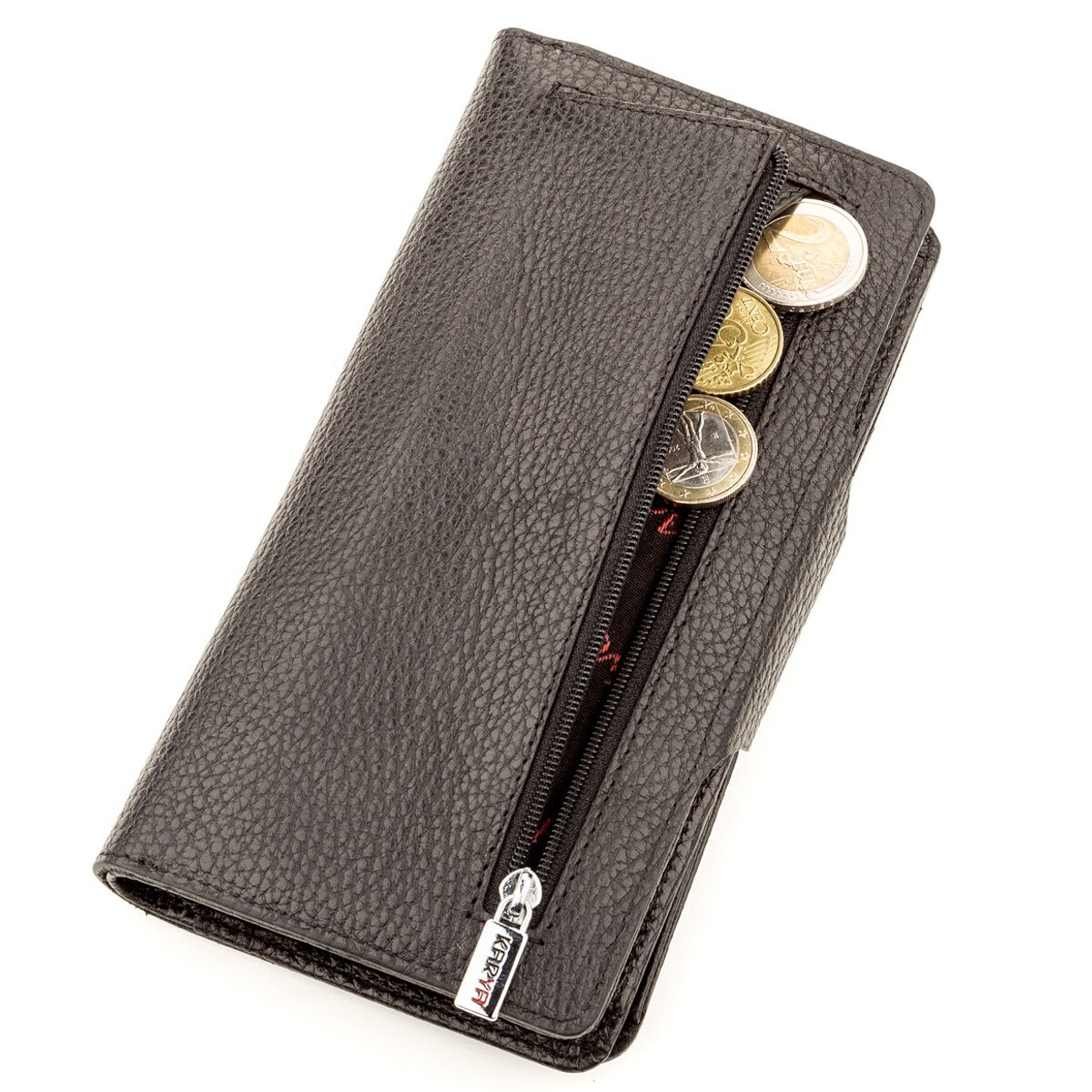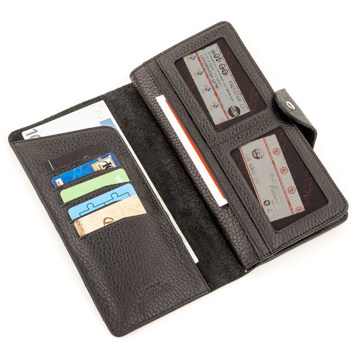 5 внутрішніх кишень і одна широка кишеня на всю довжину і висоту гаманця.
