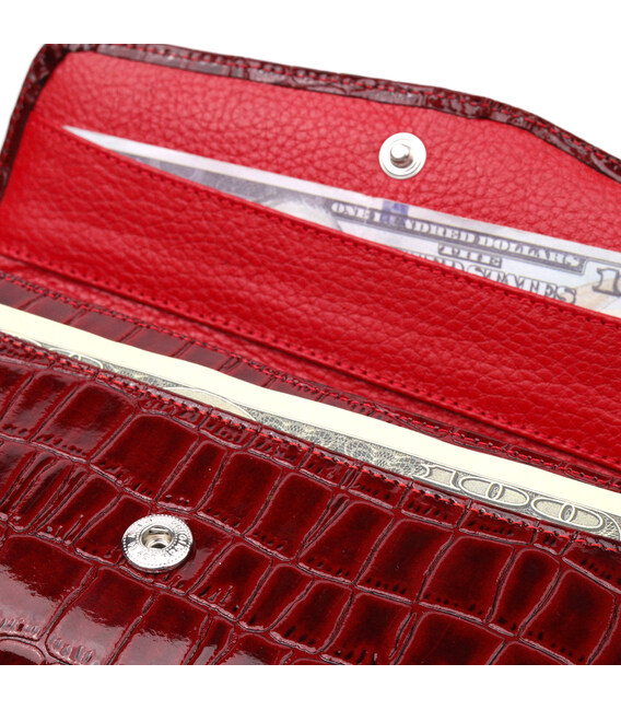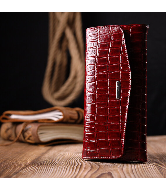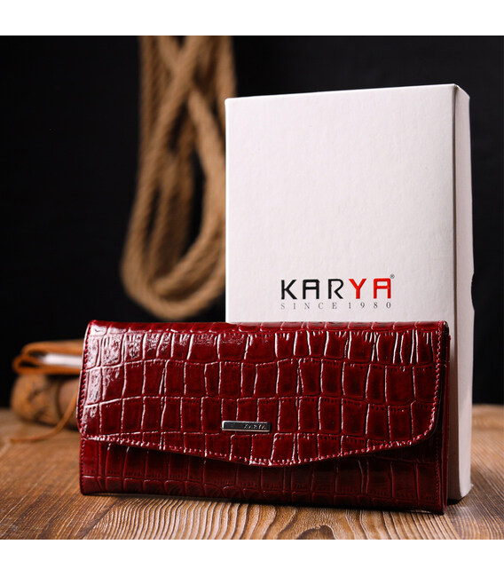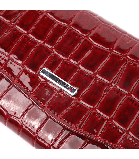 Детальніше Красивий жіночий гаманець з клапаном із фактурної шкіри під крокодила KARYA 21115 Червоний