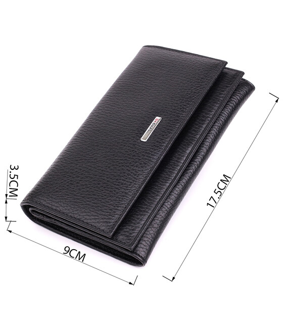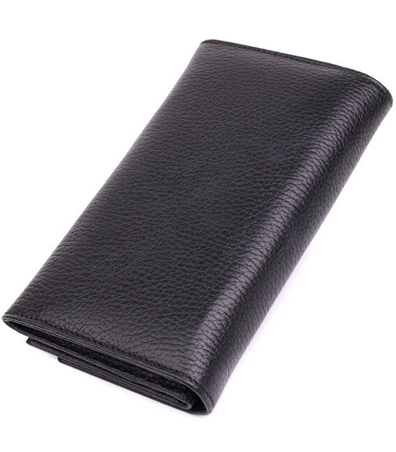 Відмінний жіночий гаманець із натуральної зернистої шкіри, в класичному чорному кольорі. Виріб складається з двох автономних відділень, які закриваються клапанами на кнопку. ідеальний варіант на кожен день для тих, хто цінує якість, зручність і комфорт, а також відмінно доповнюватиме Ваш повсякденний образ.