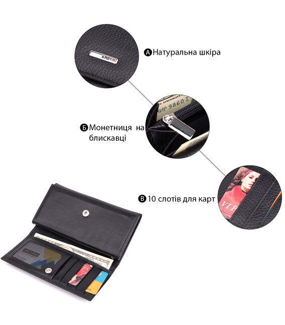Детальніше Місткий жіночий гаманець з натуральної шкіри KARYA 22859 Чорний