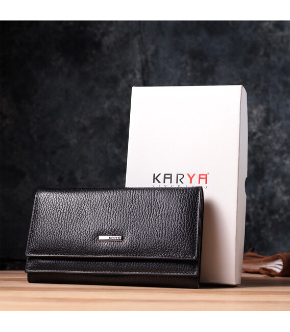 Місткий жіночий гаманець з натуральної шкіри KARYA 22859 Чорний